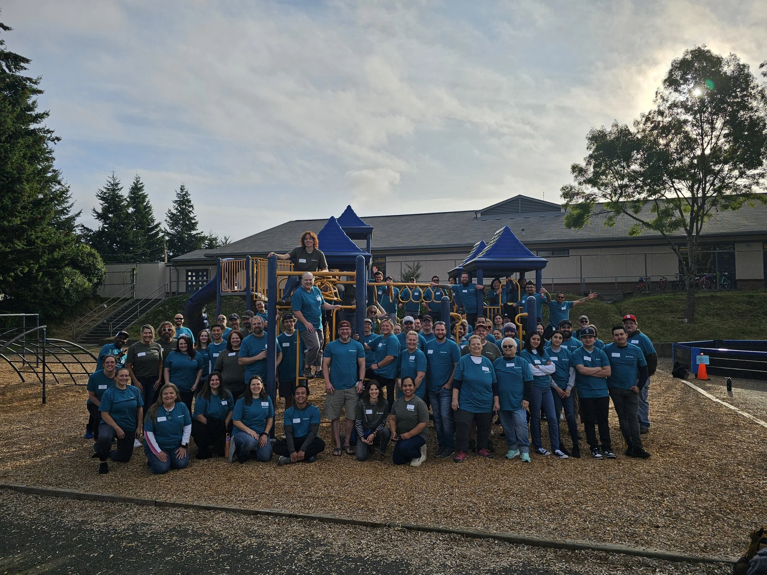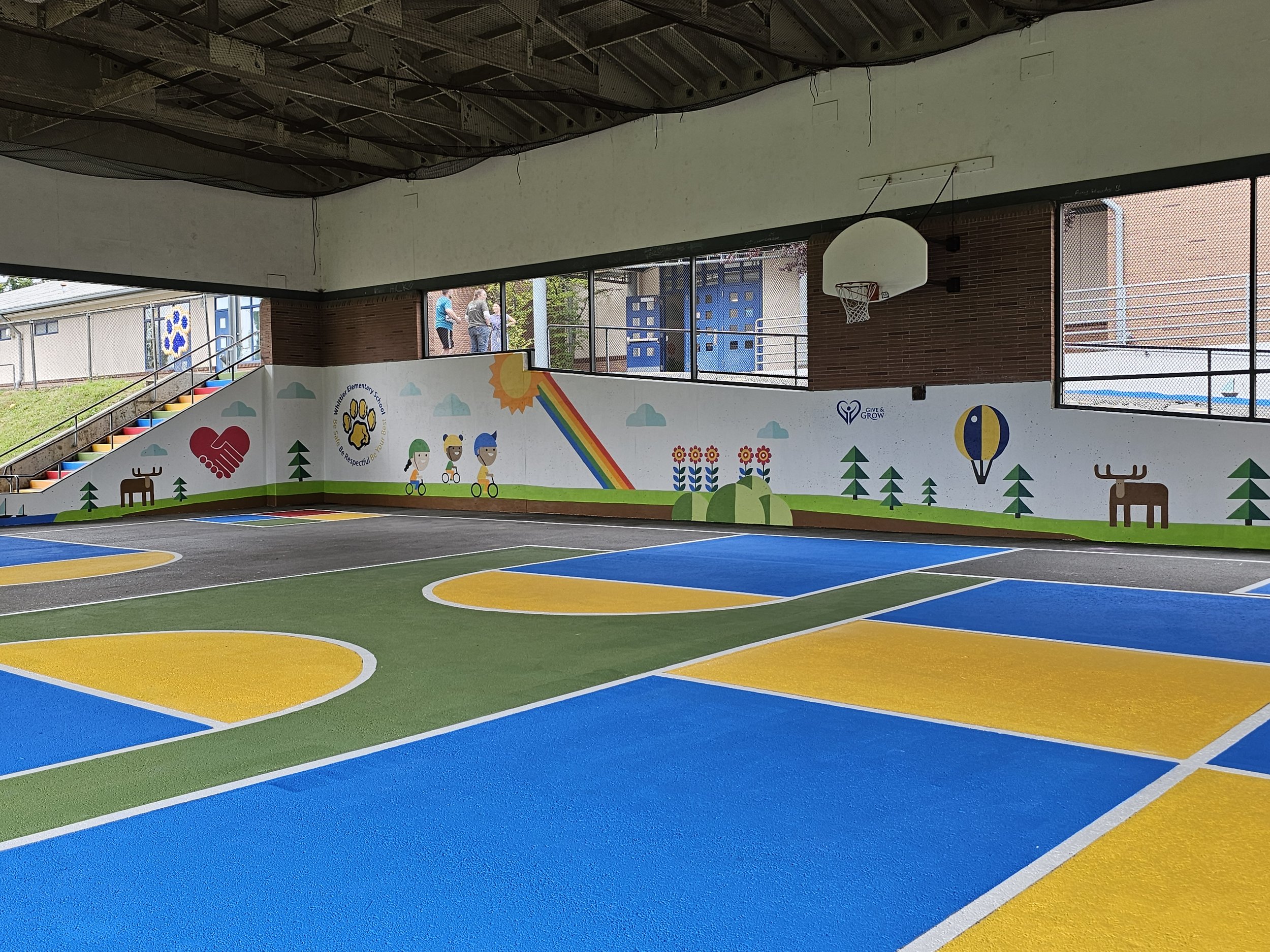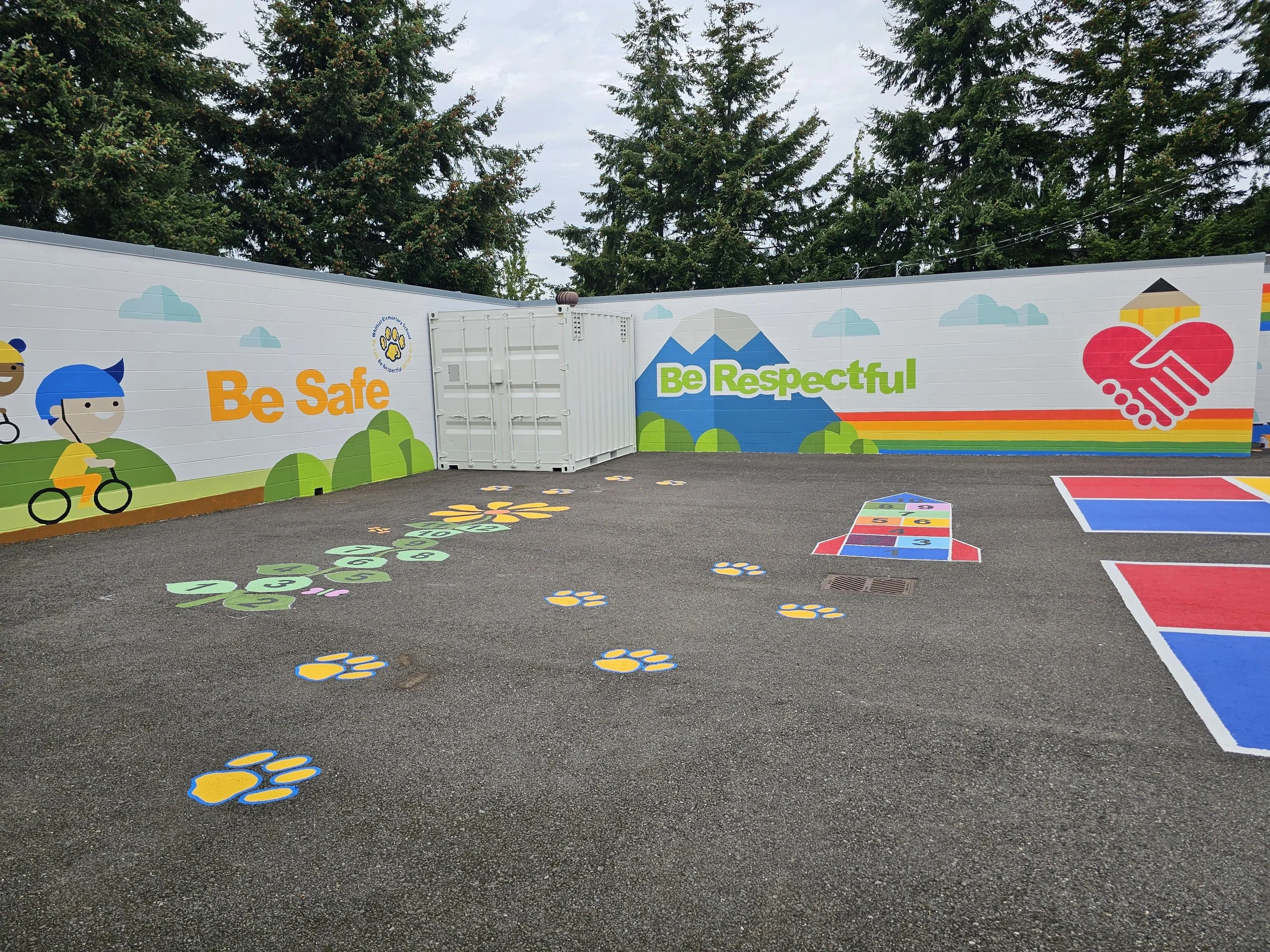 The 2024 Create Event was at Whitter Elementary School. Over 80 employees of Safran Cabin and their family members volunteered to bring bright colors to the playground. The volunteers painted multiple wall murals, the playground sports court, add a rainbow on the playground staircase, and paint a welcome mural in multiple languages.
