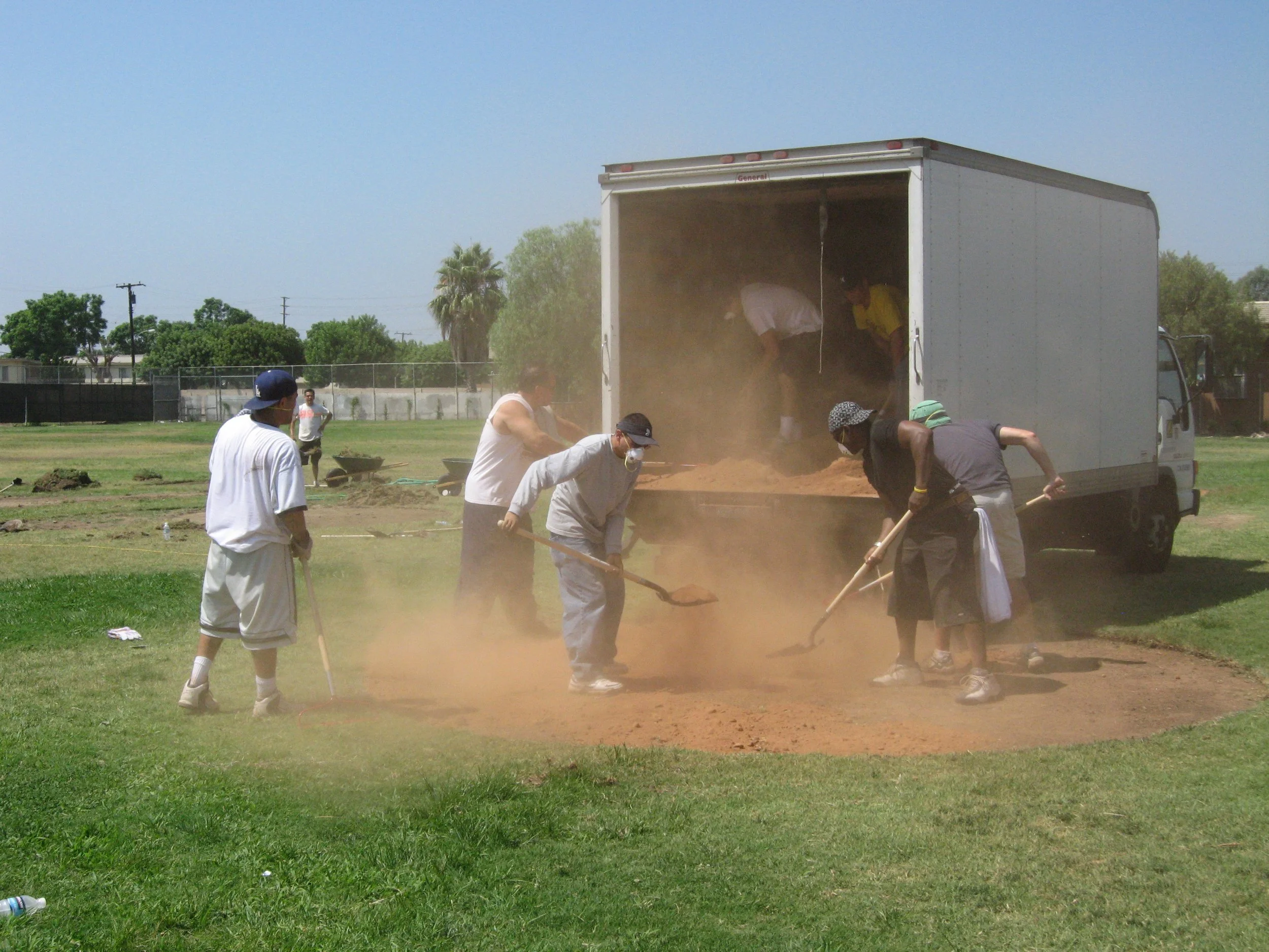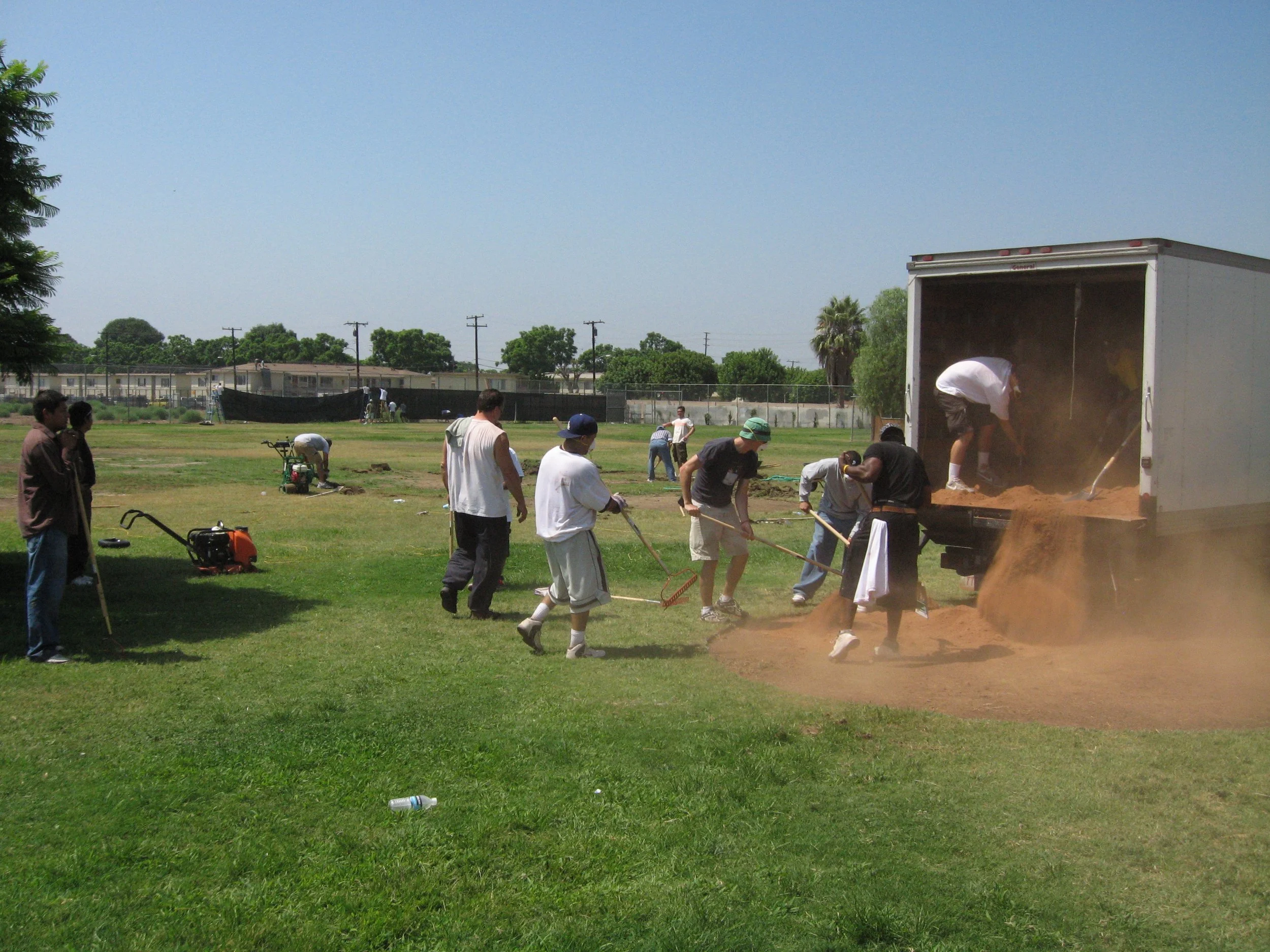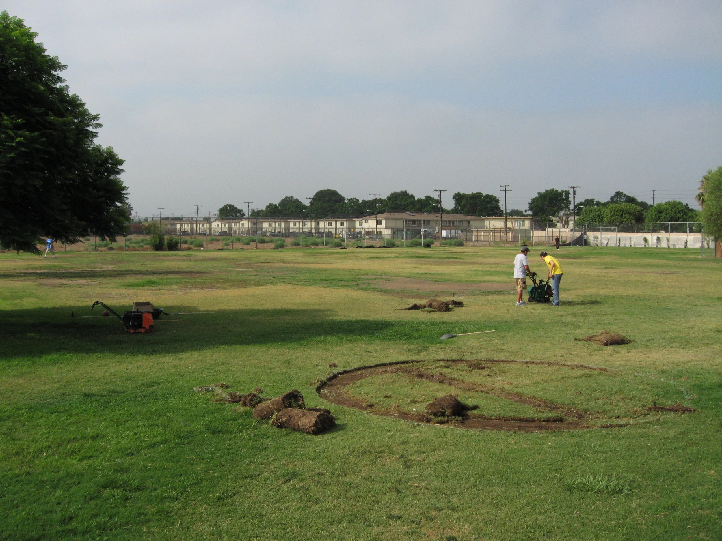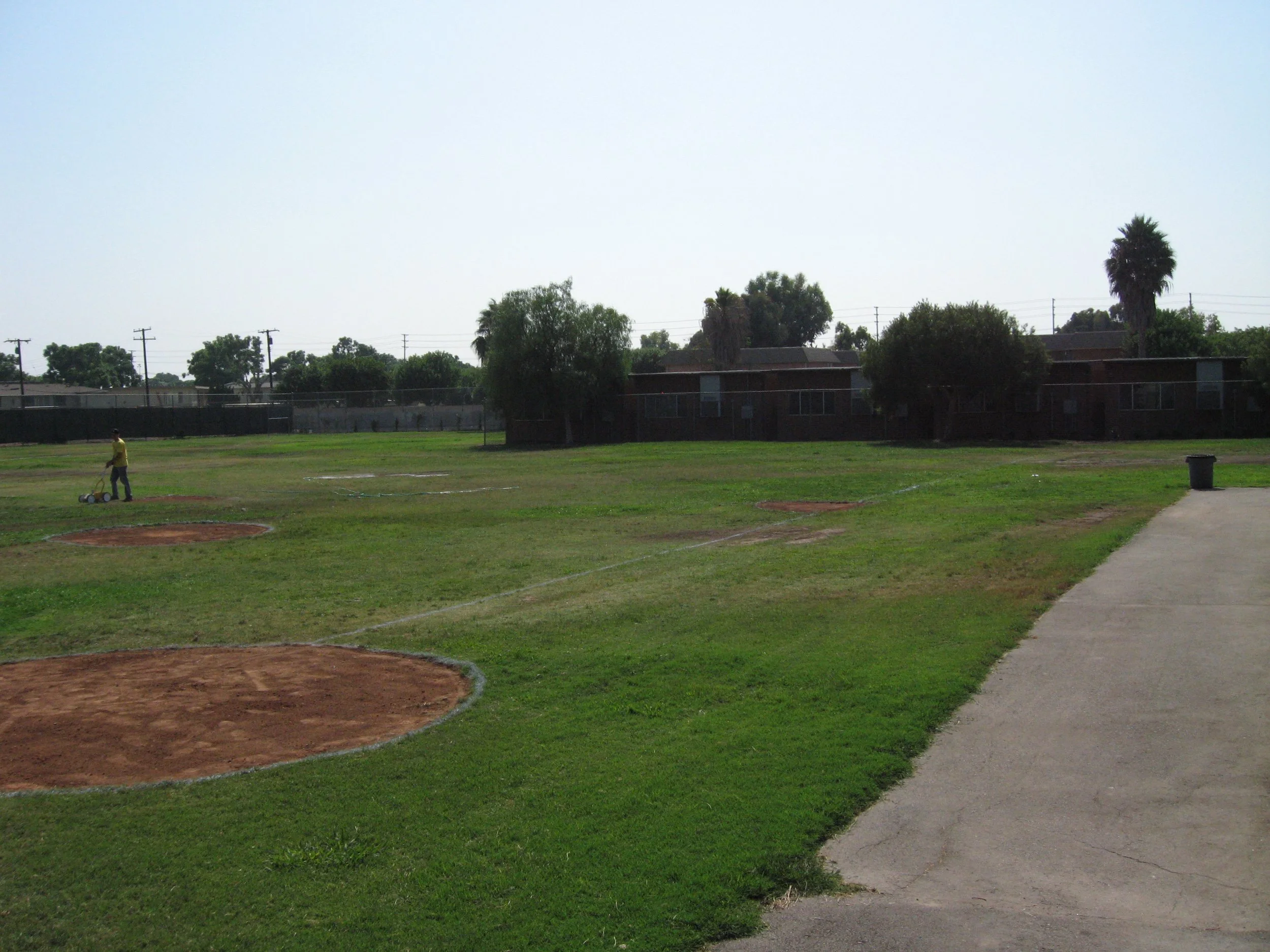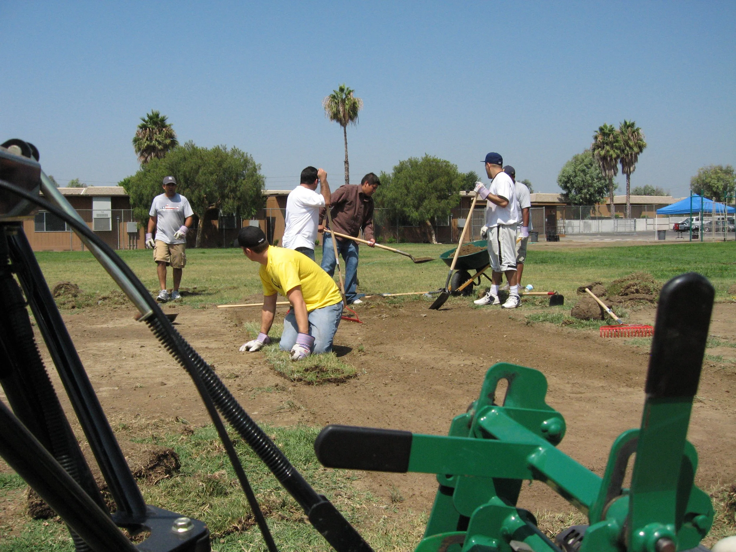 The field used by the students at Kennedy Elementary School was a dusty barren field with no plants or trees. A chain link fence enclosed the field. Give & Grow planted trees and shrubs to create a more inviting field. Give & Grow also installed attractive netting to cover the fence. The improvements to the field create areas of shade as well as cover the unattractive fencing, producing an enclosed greener field.