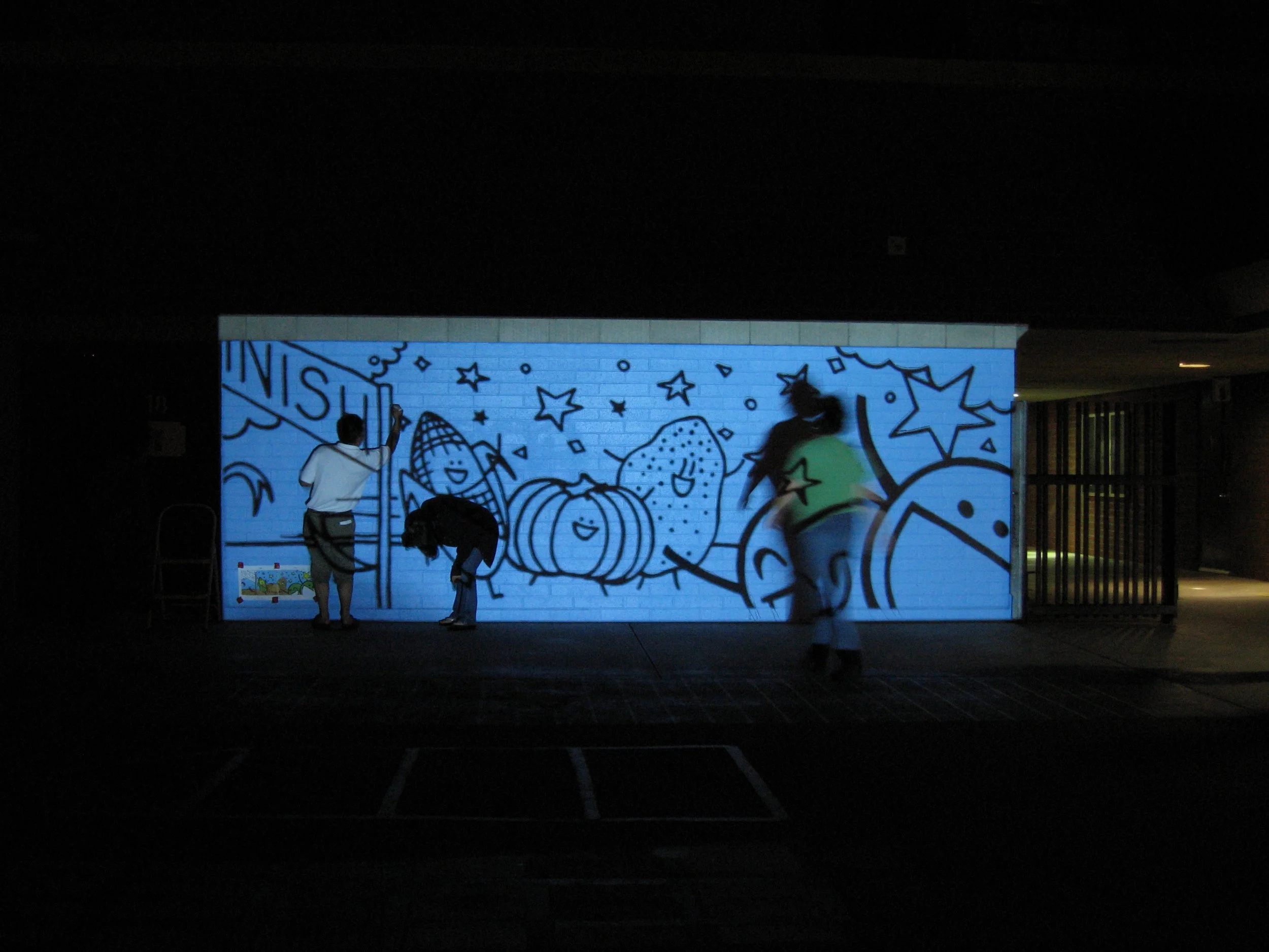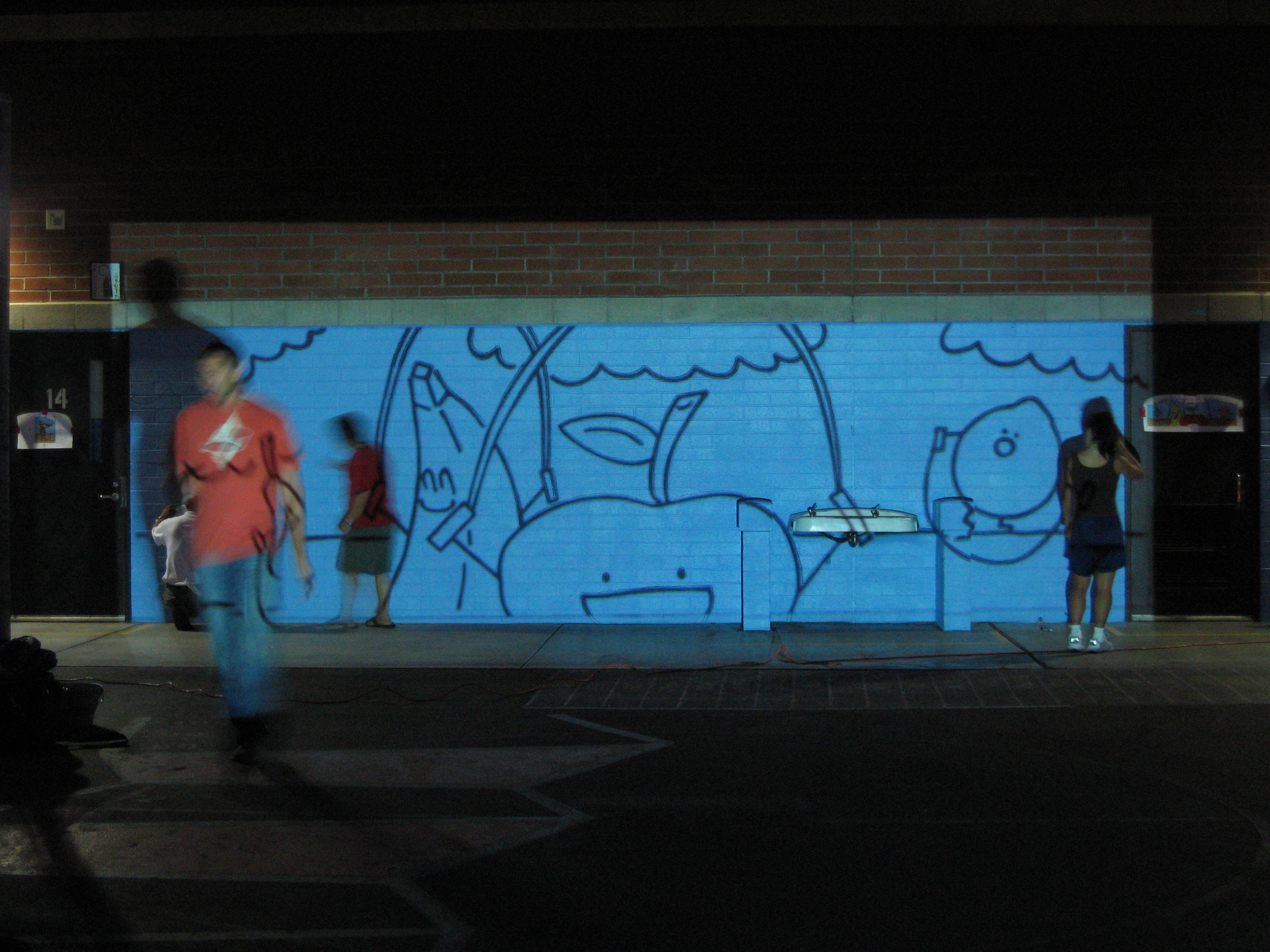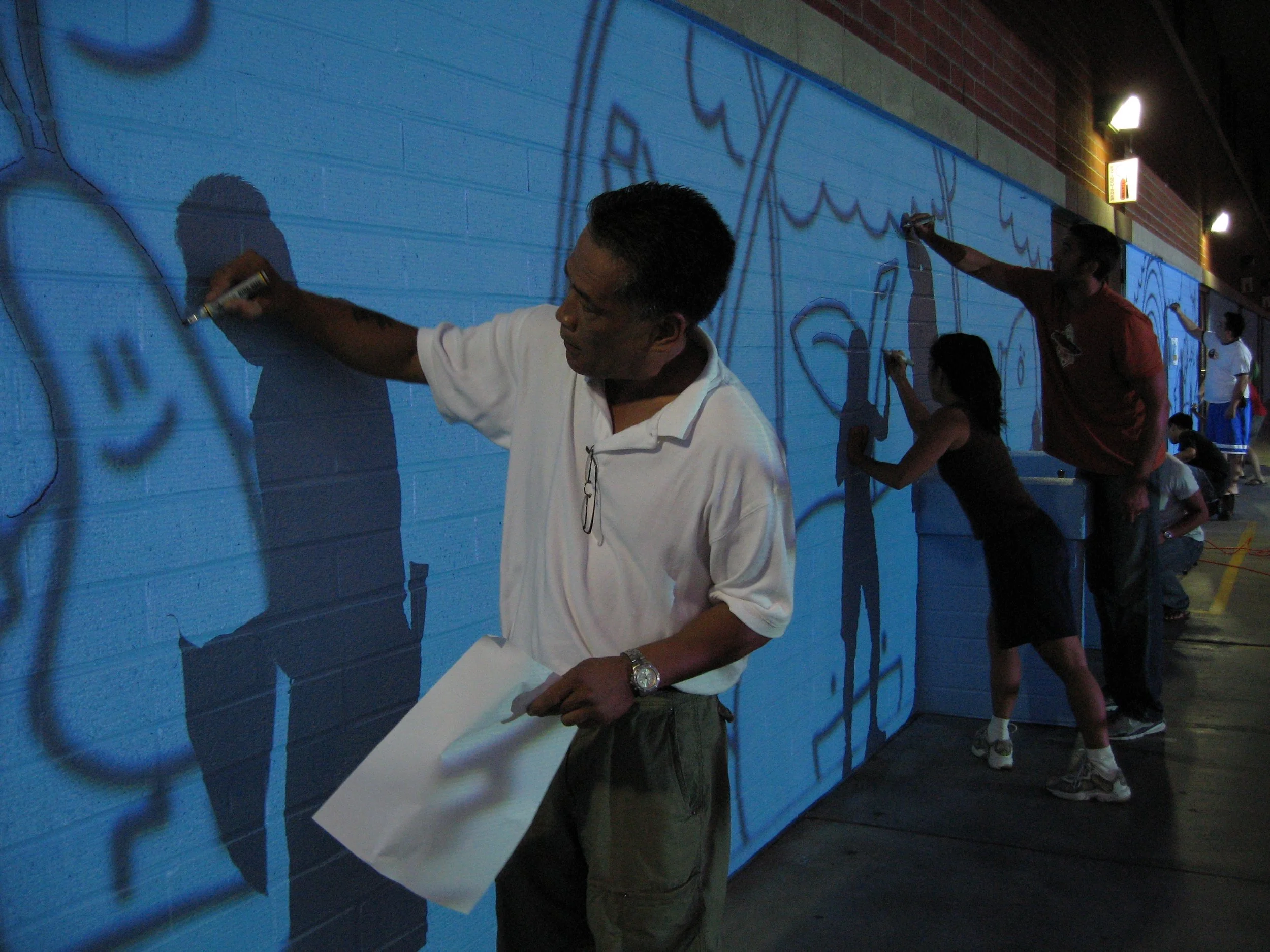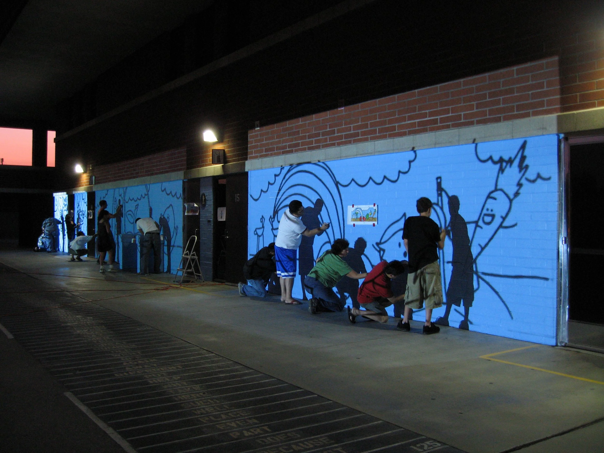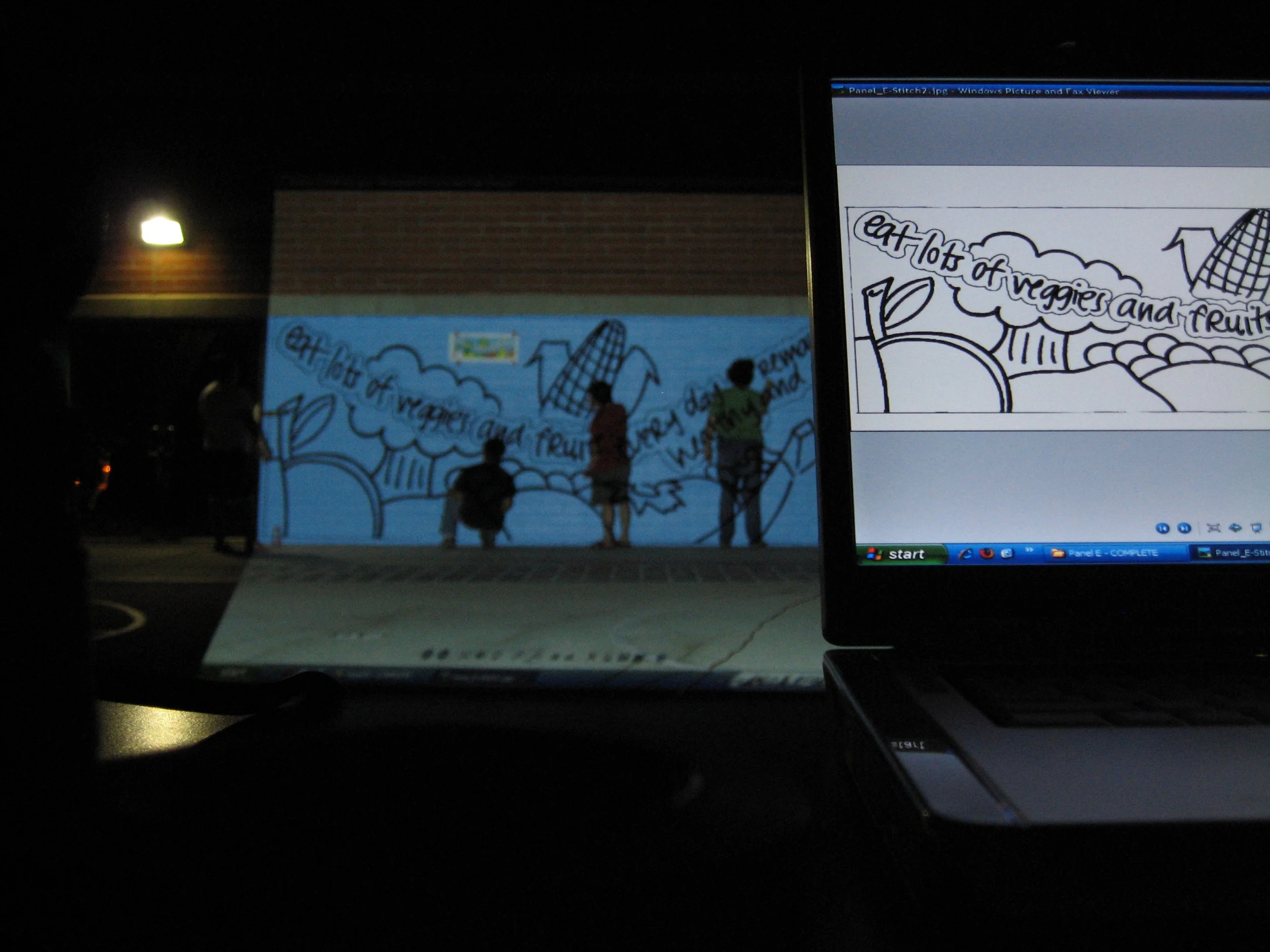 The walls surrounding the playground were plain brick, and the entire play area appeared very bleak. Give & Grow designed and painted a 170-foot mural on the entire back wall of the school building. The mural illustrates fruits and vegetables playing sports and being active. This is to promote a healthy lifestyle pivotal in combating childhood obesity. This mural not only provides color and vitality to the playground but addresses an important topic.