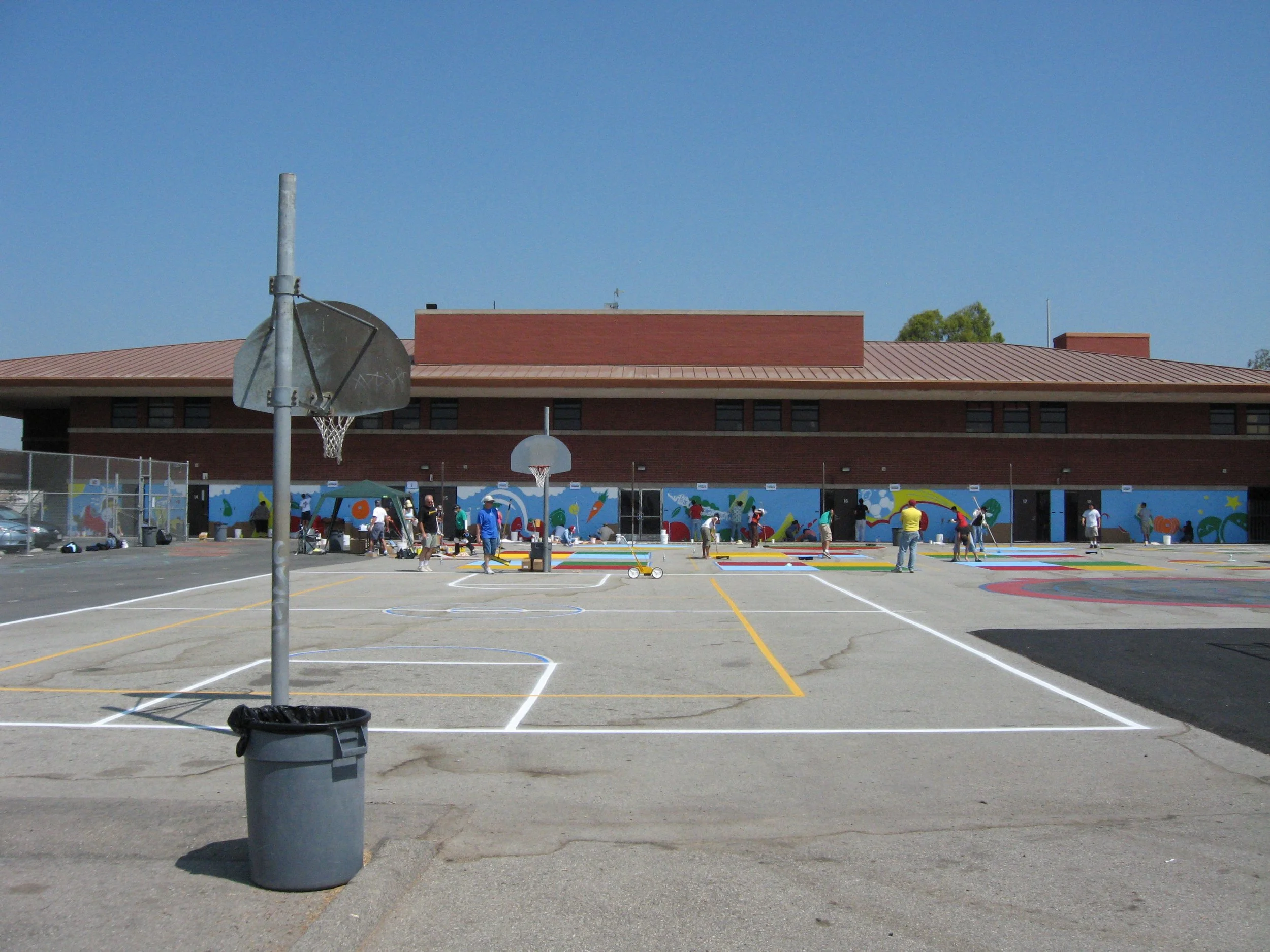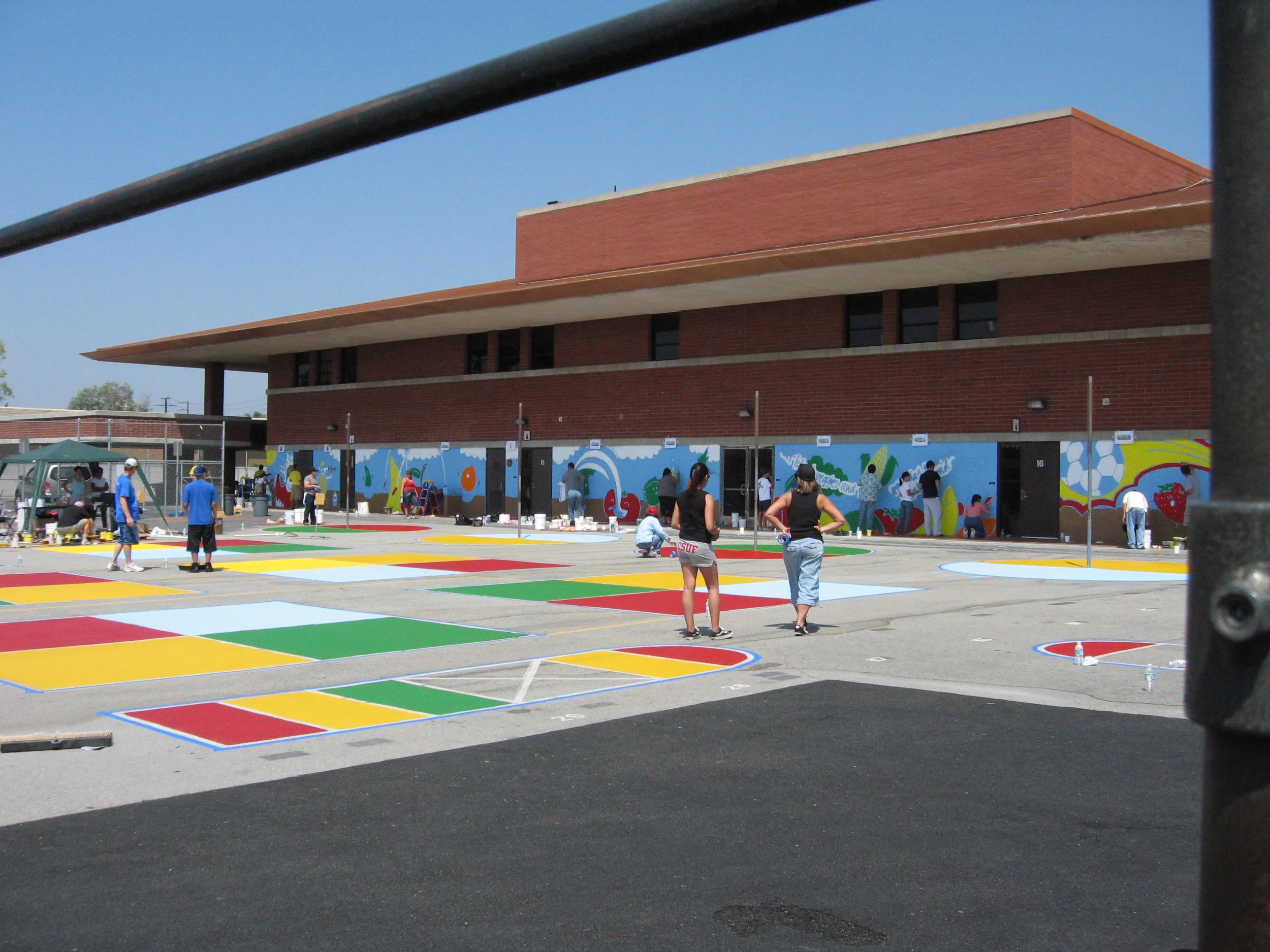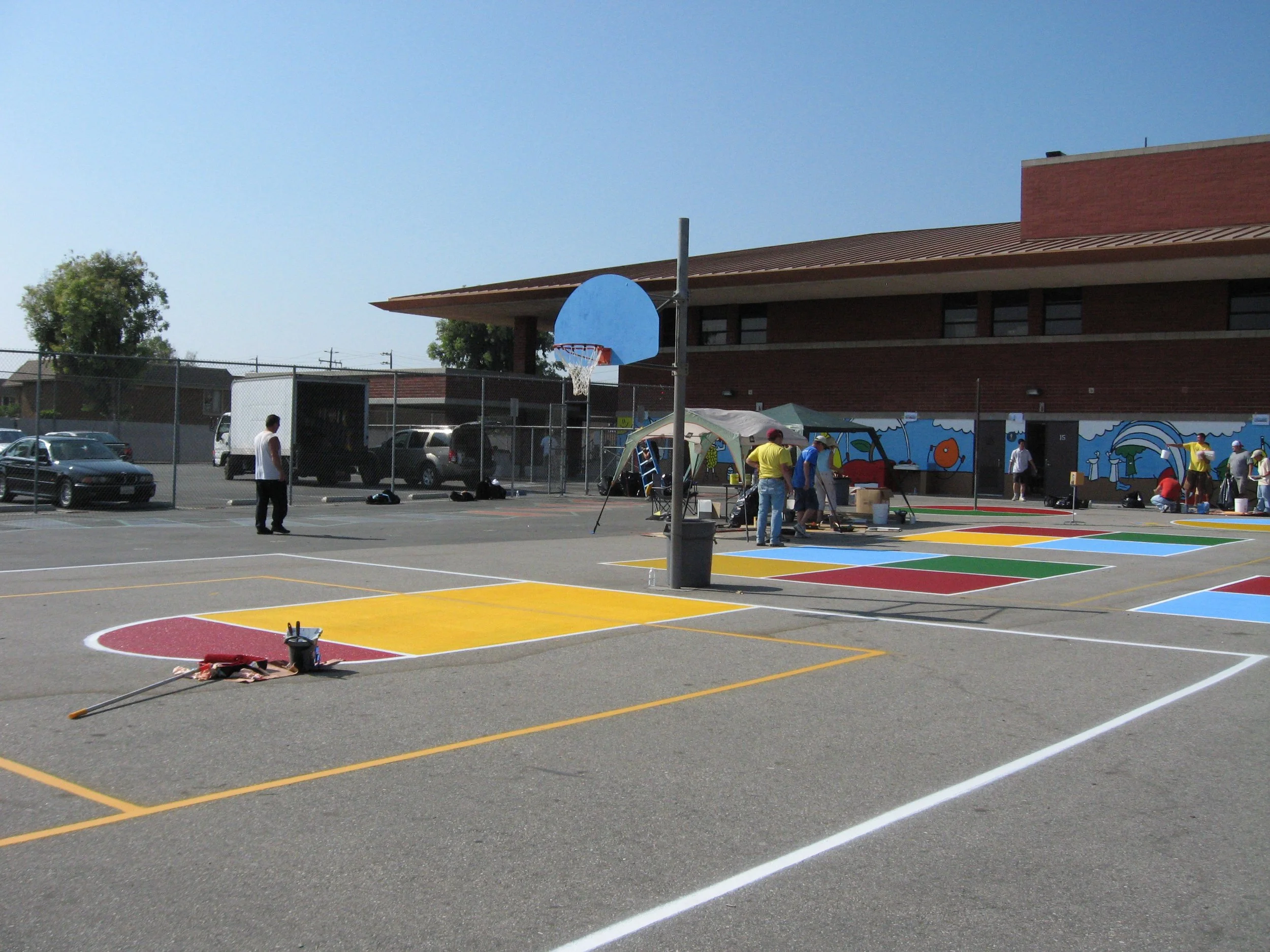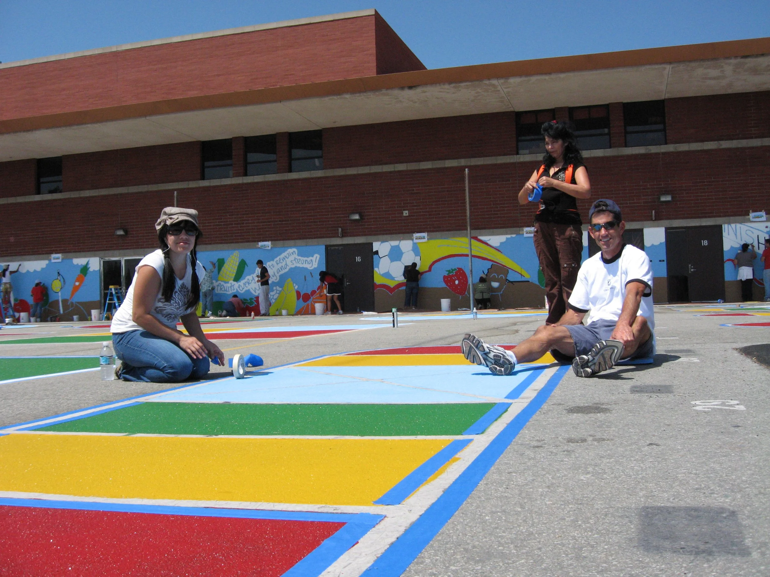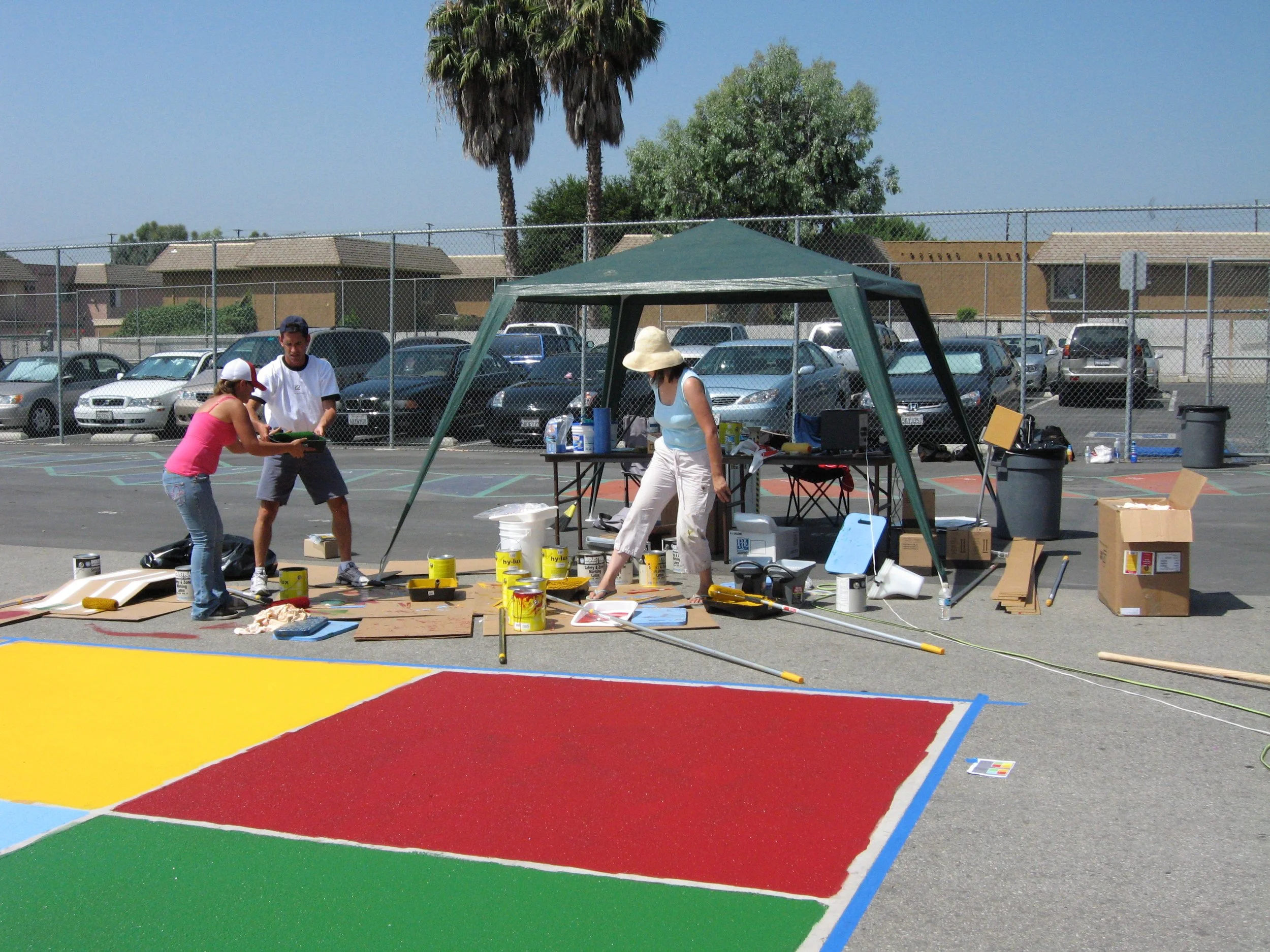 KES is an elementary school of over 800 students who regularly play games, such as “four square,” on the pavement. However, the games were colorless and lacked vitality. Give & Grow painted the “four square” grid, dodge ball boundaries, and other playground games in vibrant colors.