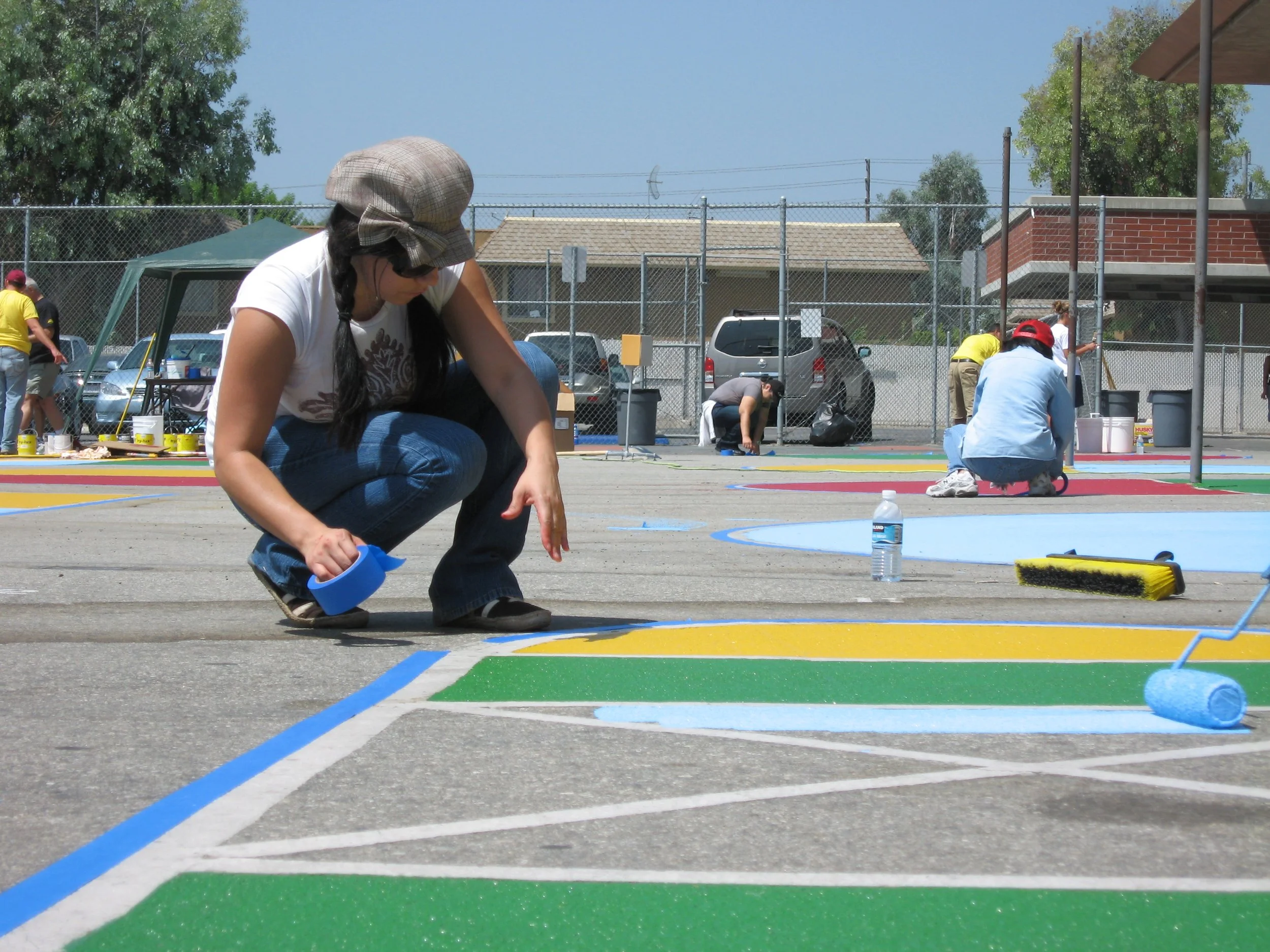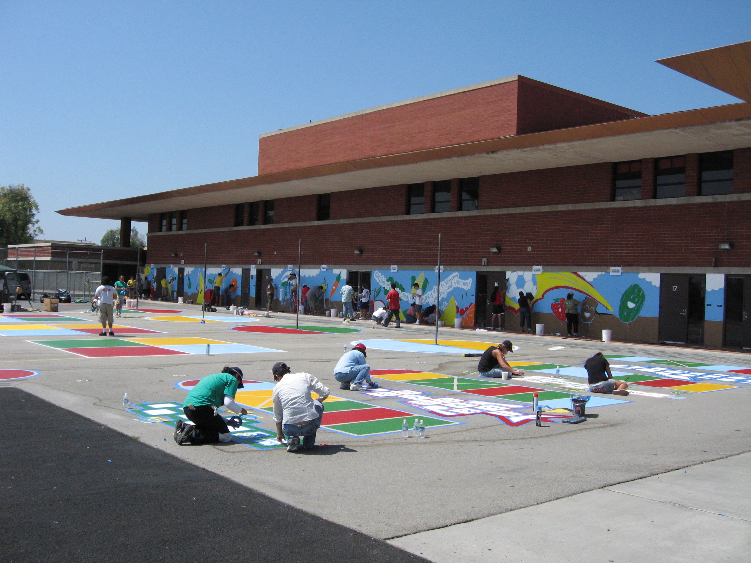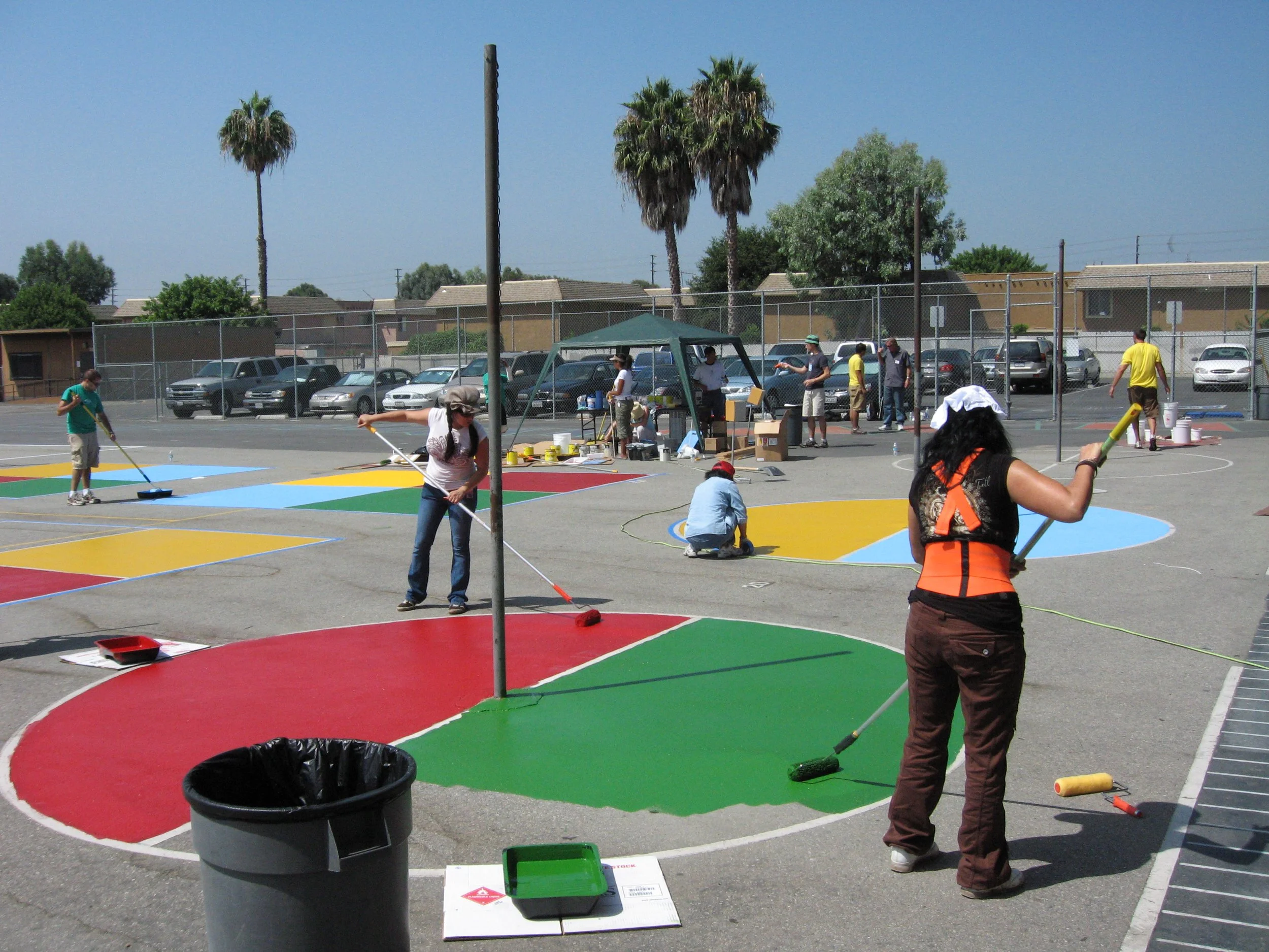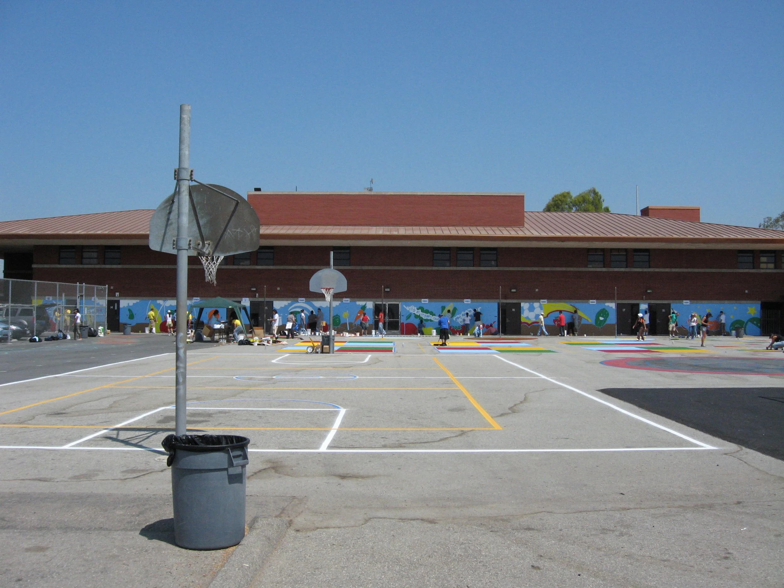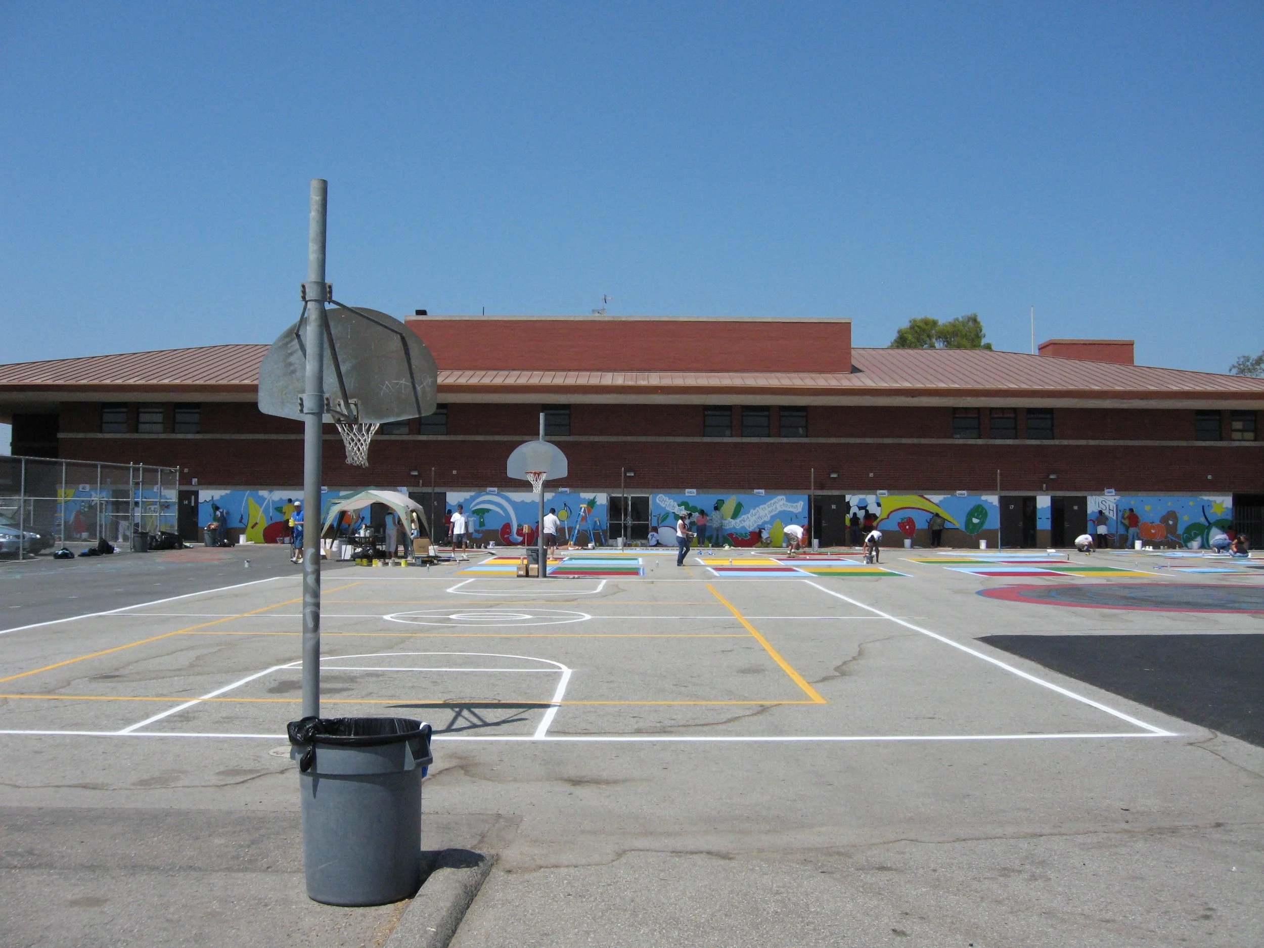 KES is an elementary school of over 800 students who regularly play games, such as “four square,” on the pavement. However, the games were colorless and lacked vitality. Give & Grow painted the “four square” grid, dodge ball boundaries, and other playground games in vibrant colors.
