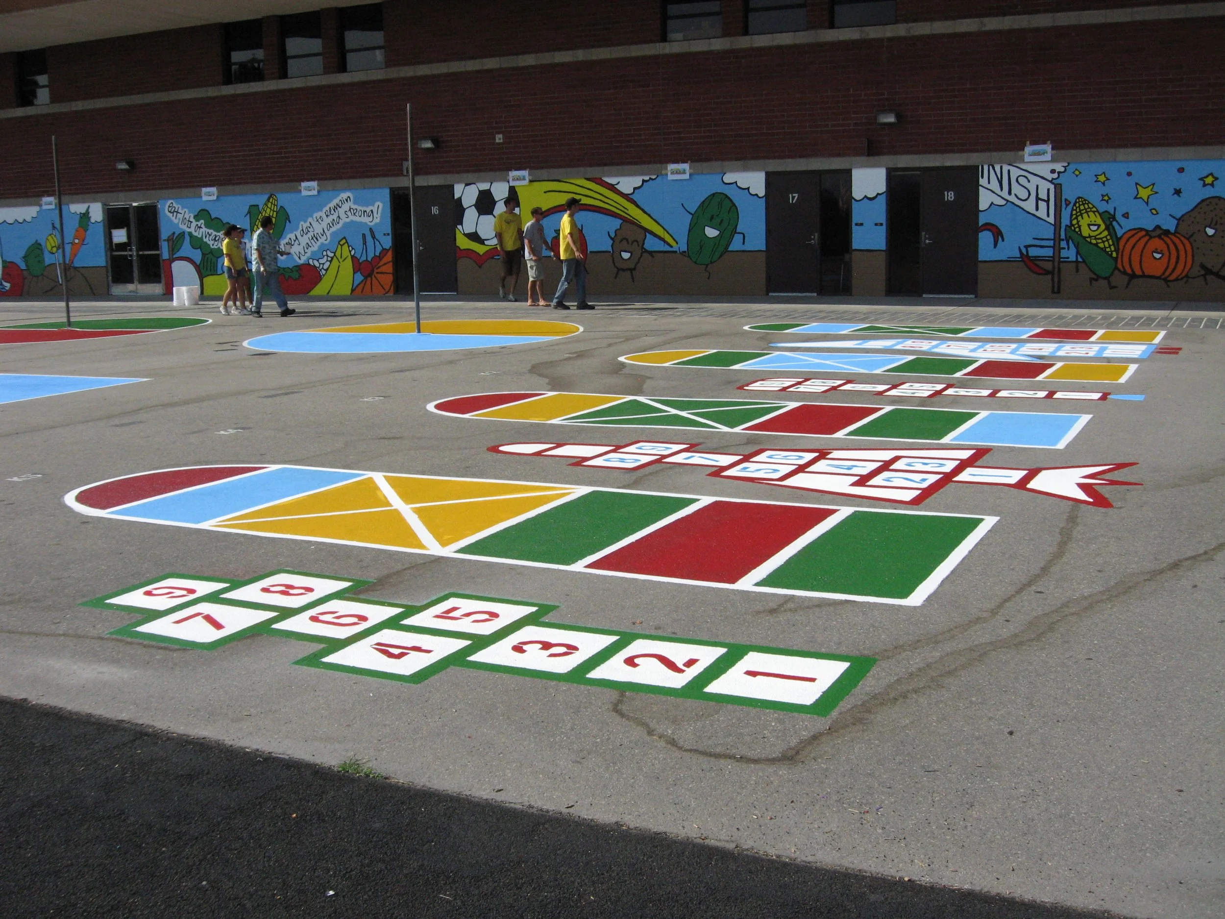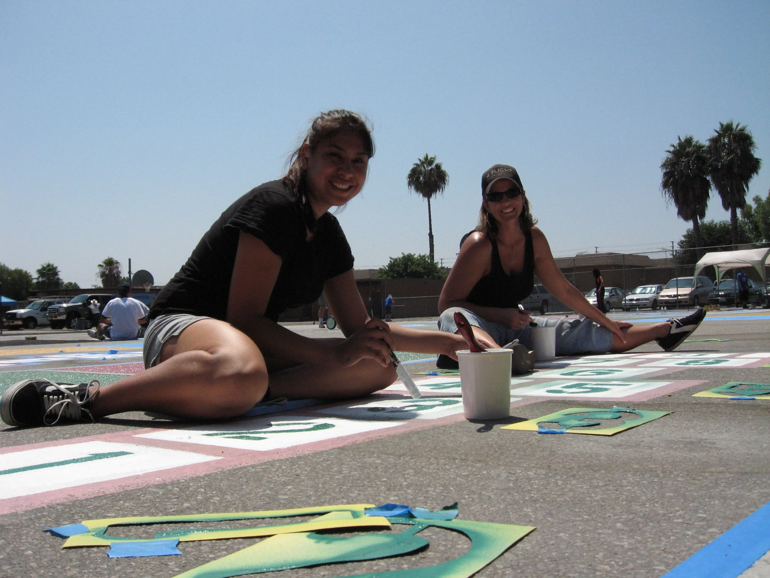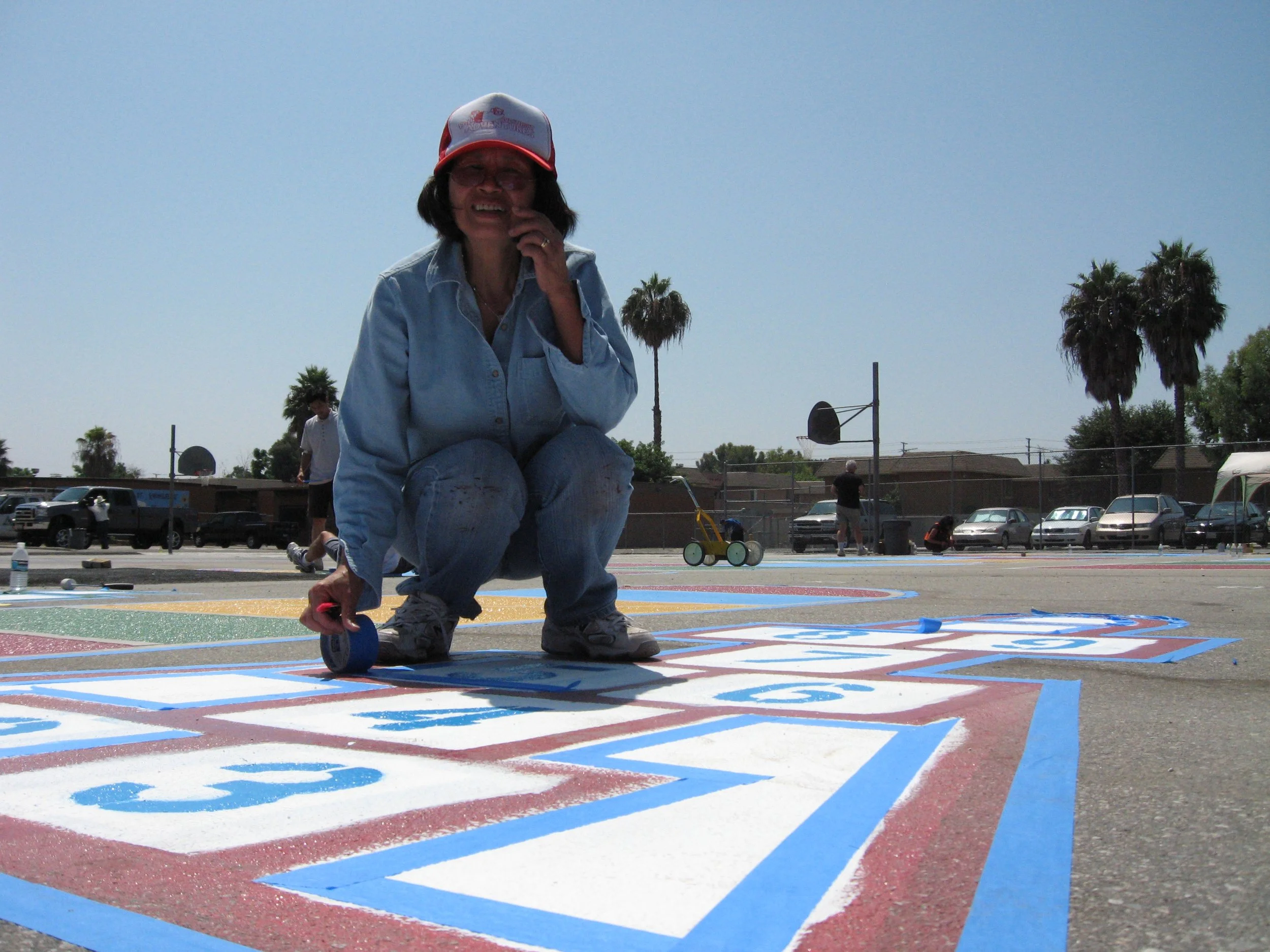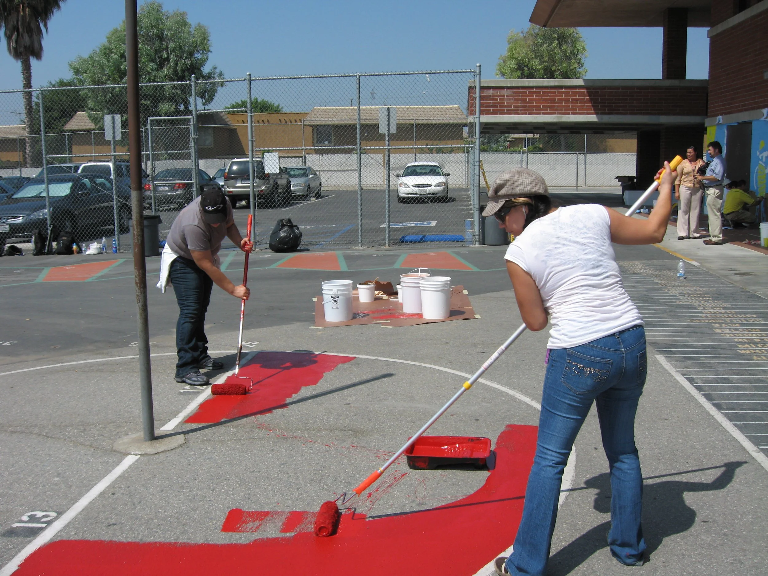 KES is an elementary school of over 800 students who regularly play games, such as “four square,” on the pavement. However, the games were colorless and lacked vitality. Give & Grow painted the “four square” grid, dodge ball boundaries, and other playground games in vibrant colors.