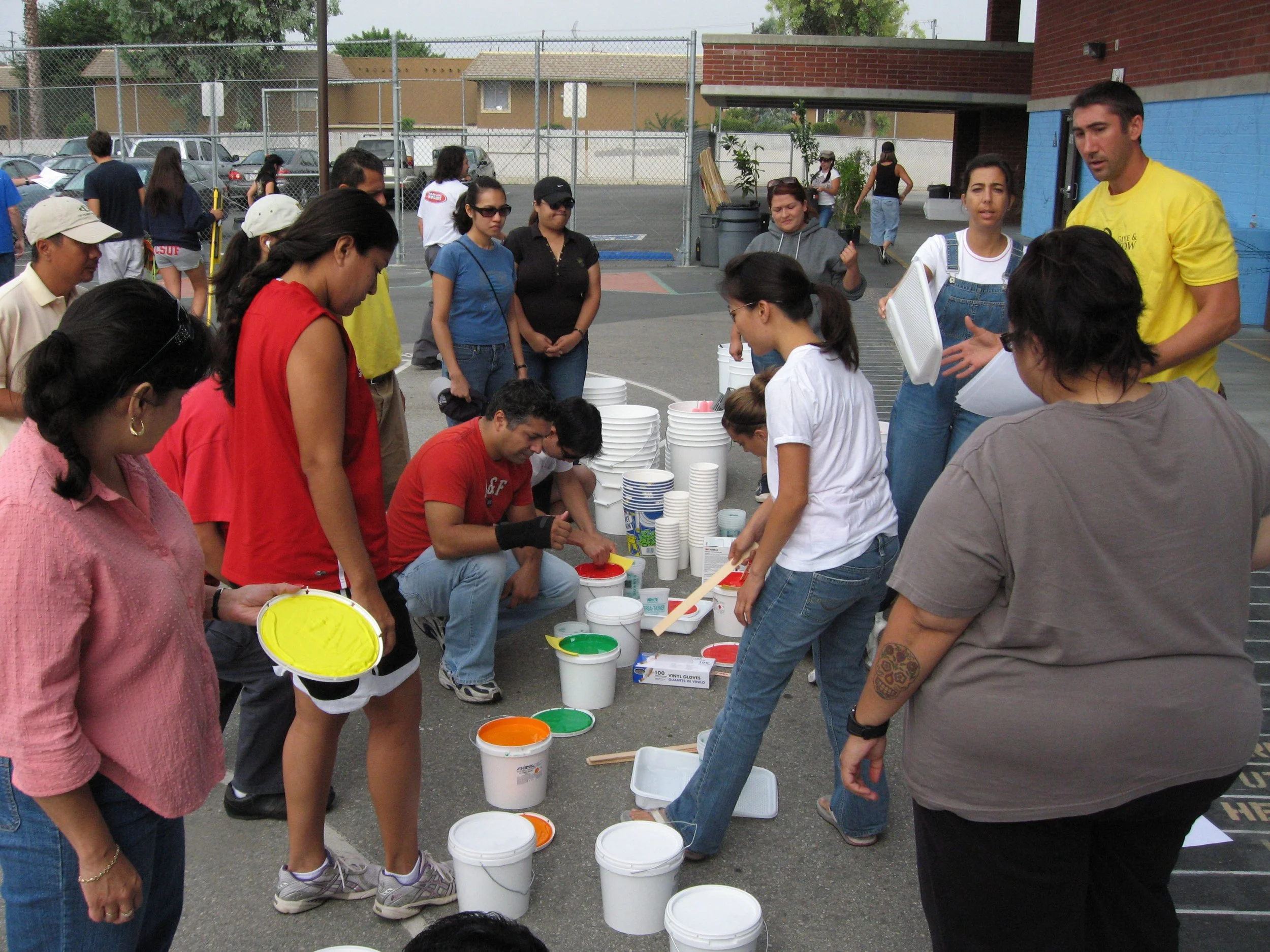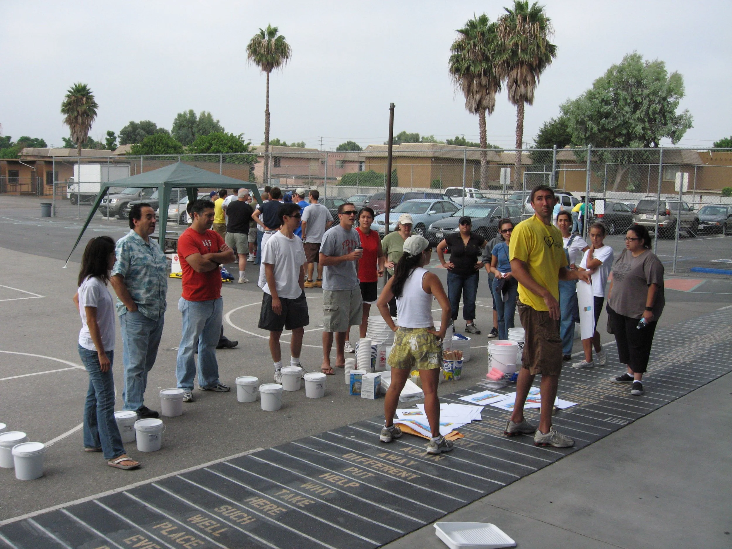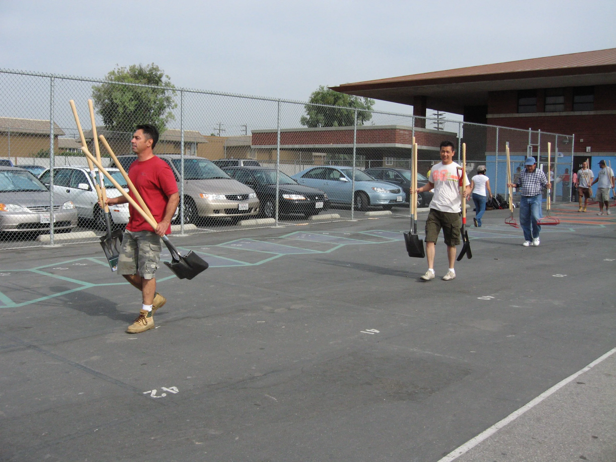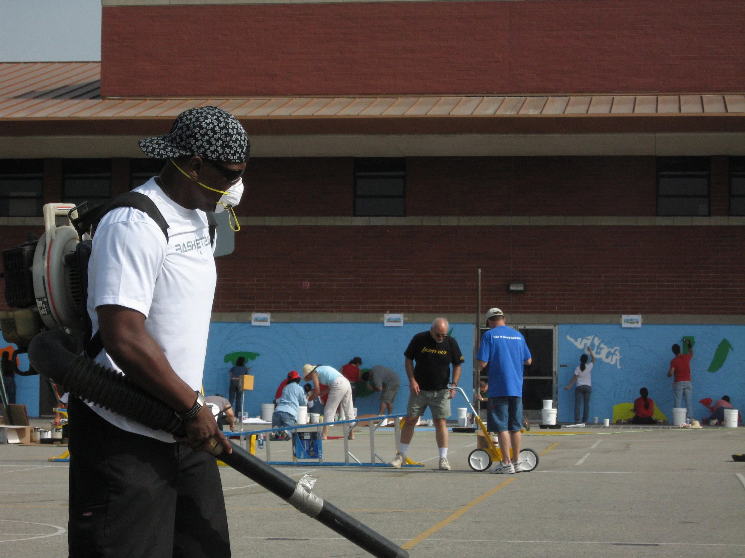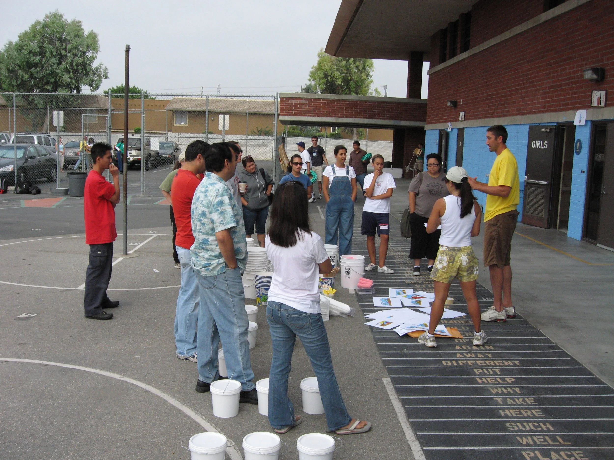 KES is an elementary school of over 800 students who regularly play games, such as “four square,” on the pavement. However, the games were colorless and lacked vitality. Give & Grow painted the “four square” grid, dodge ball boundaries, and other playground games in vibrant colors.