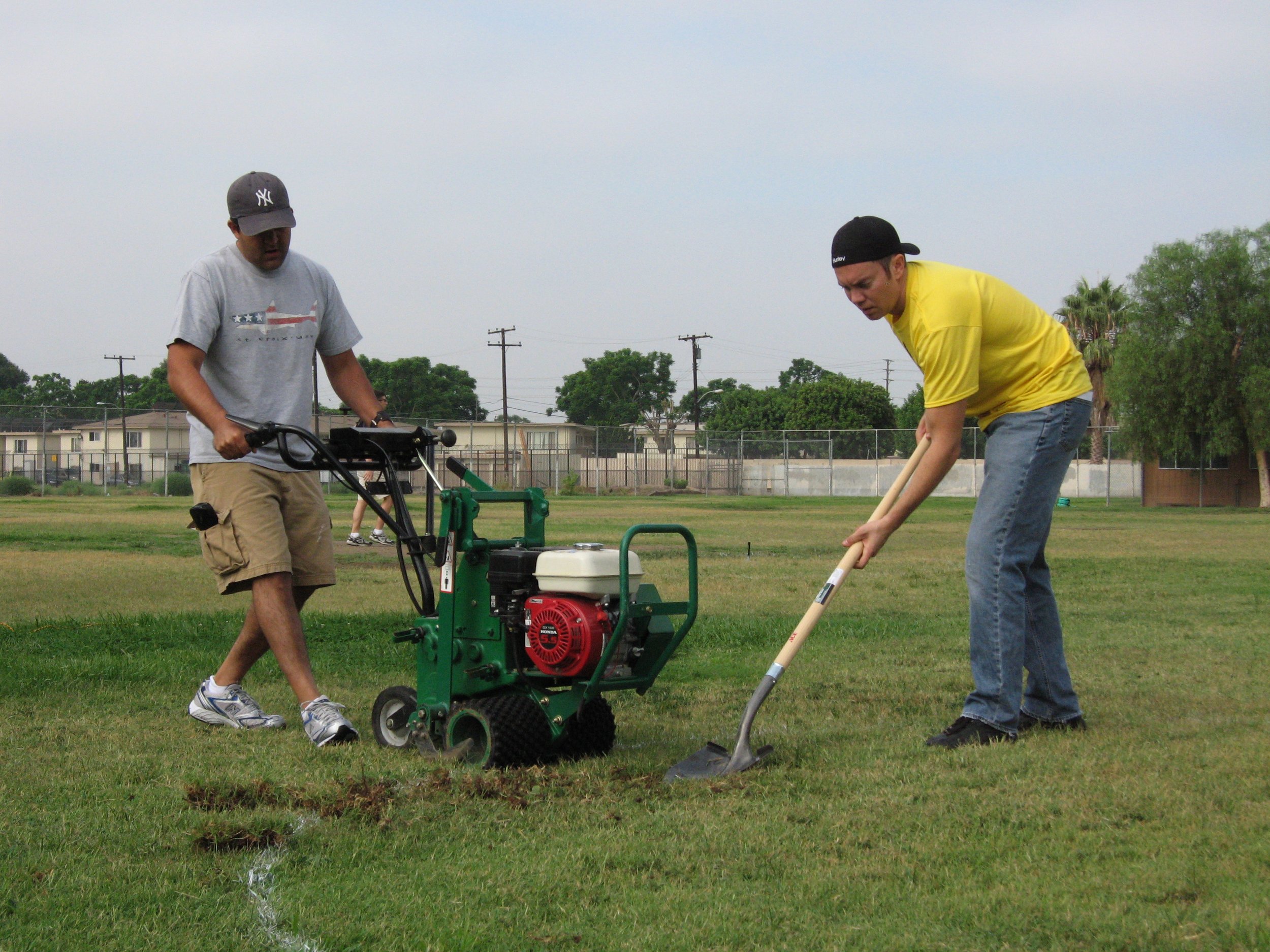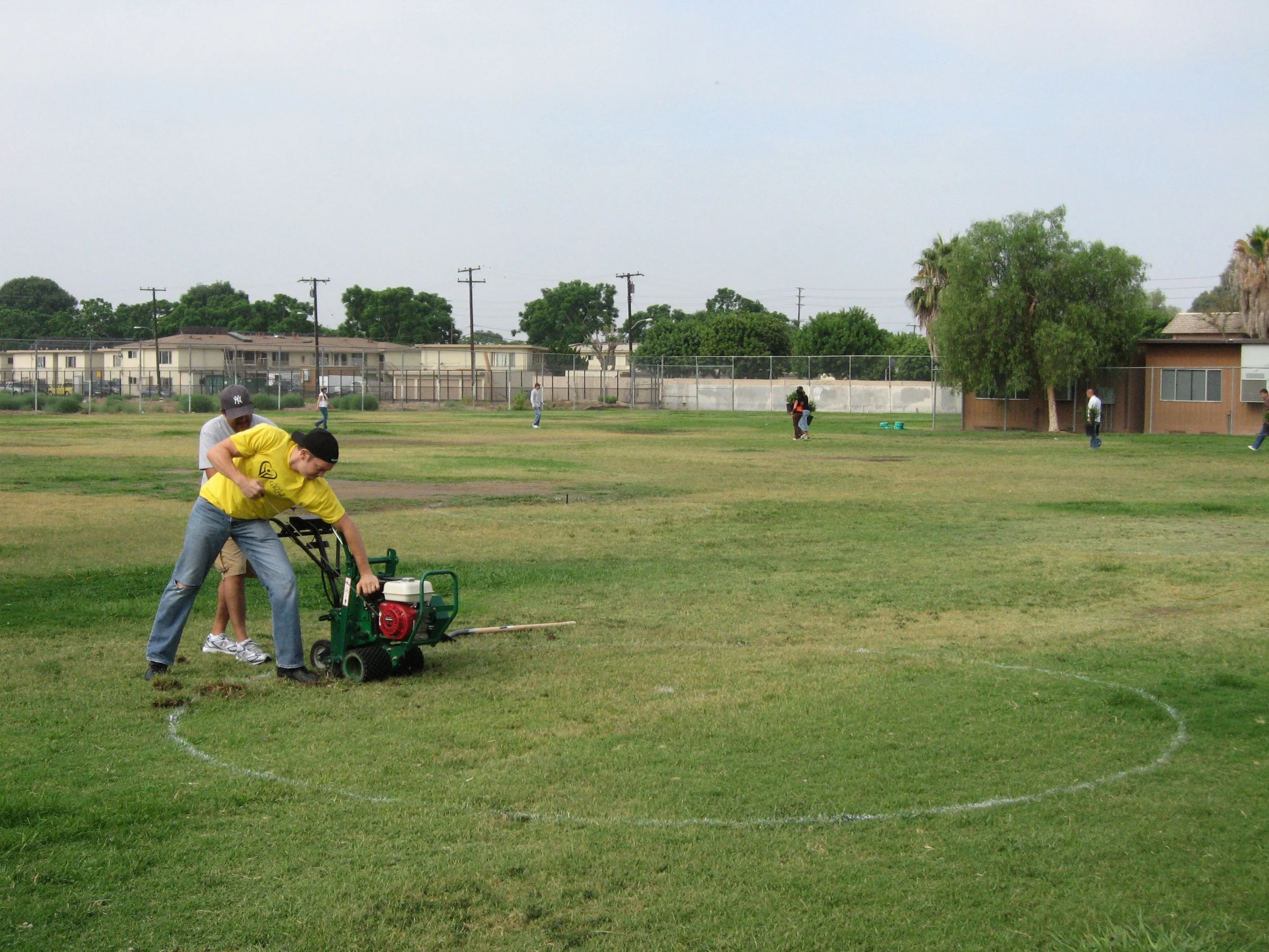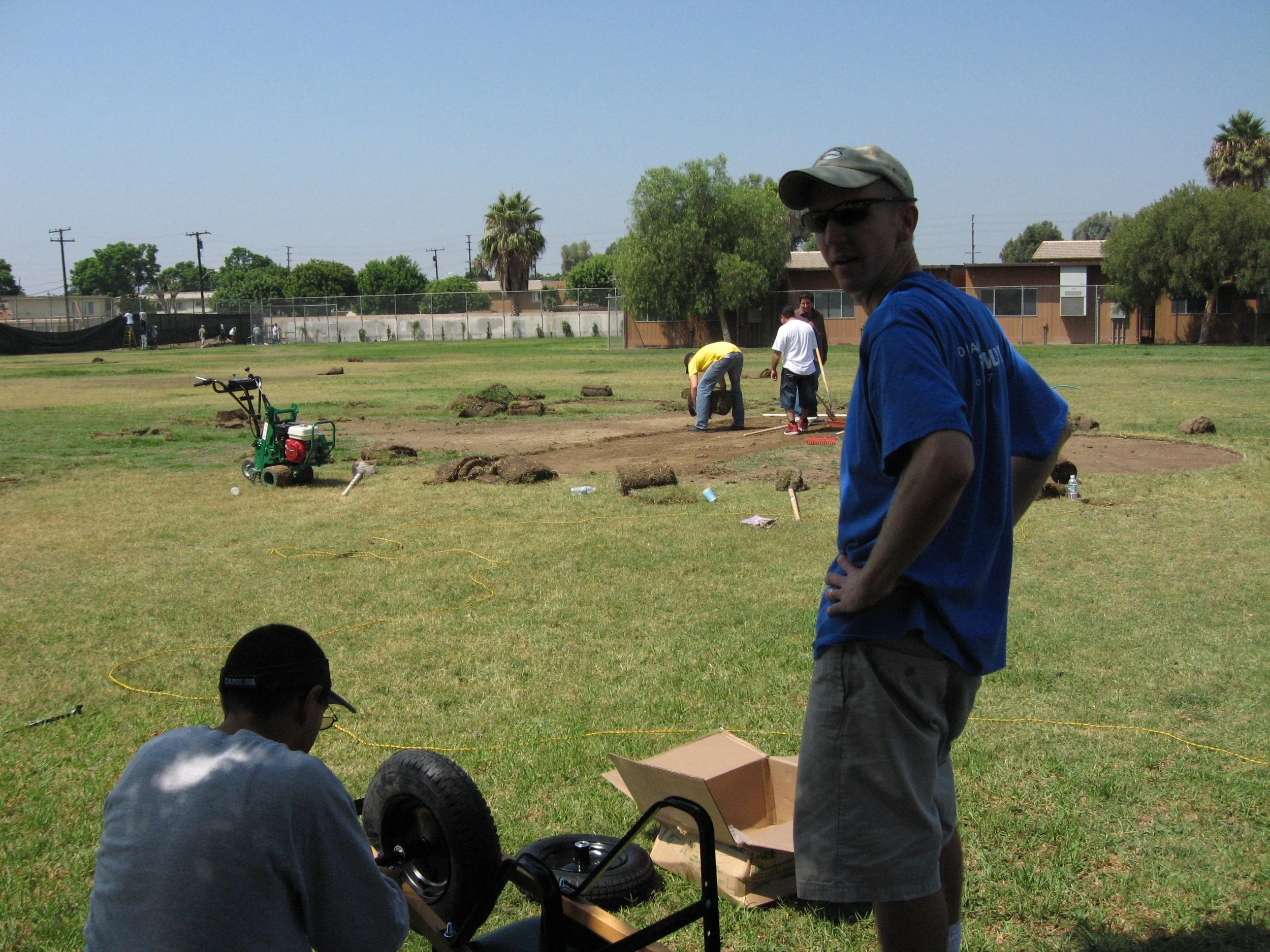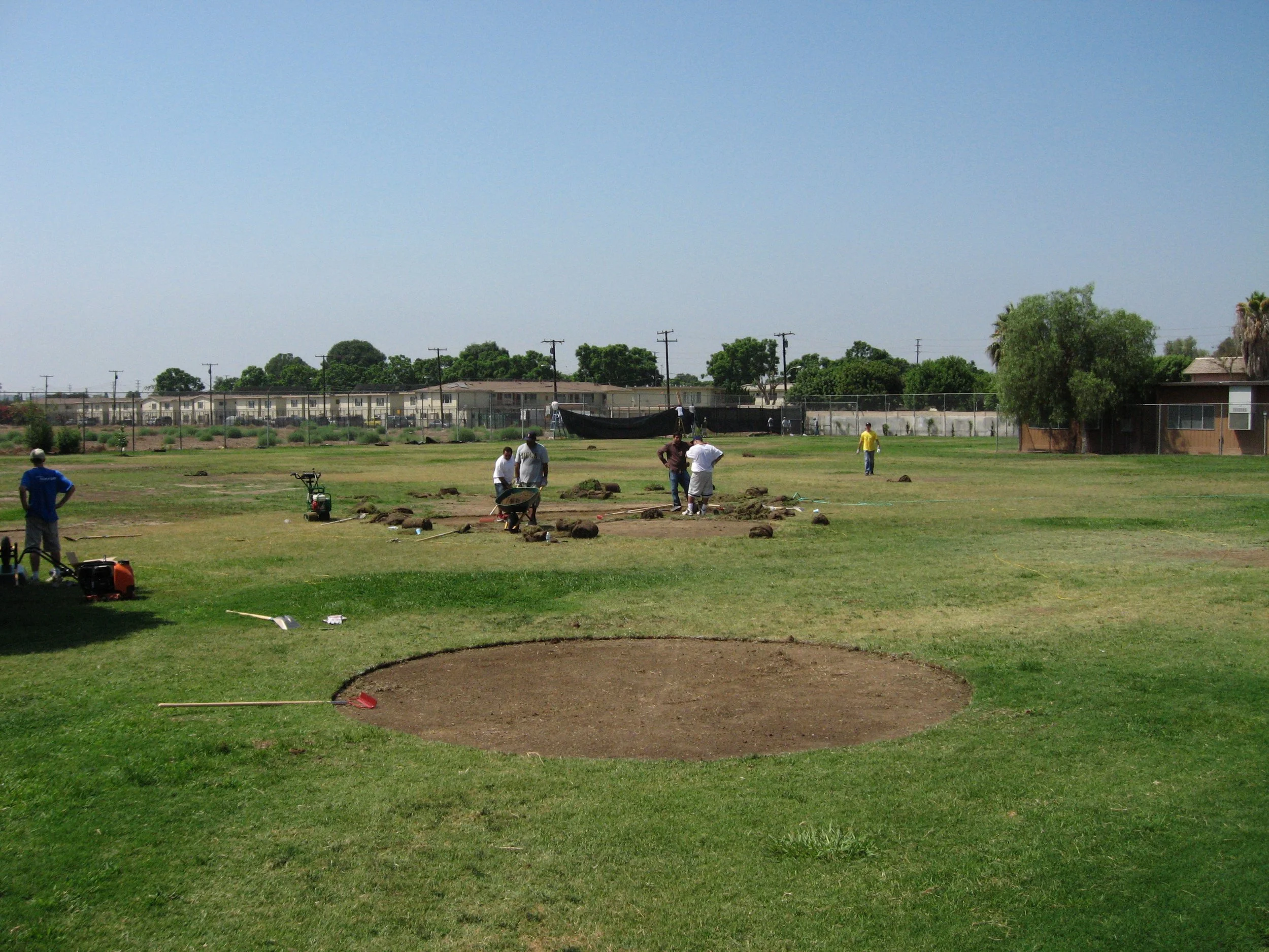 Baseball is played almost daily on the KES playfield. There was a backstop fence, but there was no baseball field cut into the grass. Give & Grow cut a baseball field to provide the students with a functional and impressive field to play baseball on.