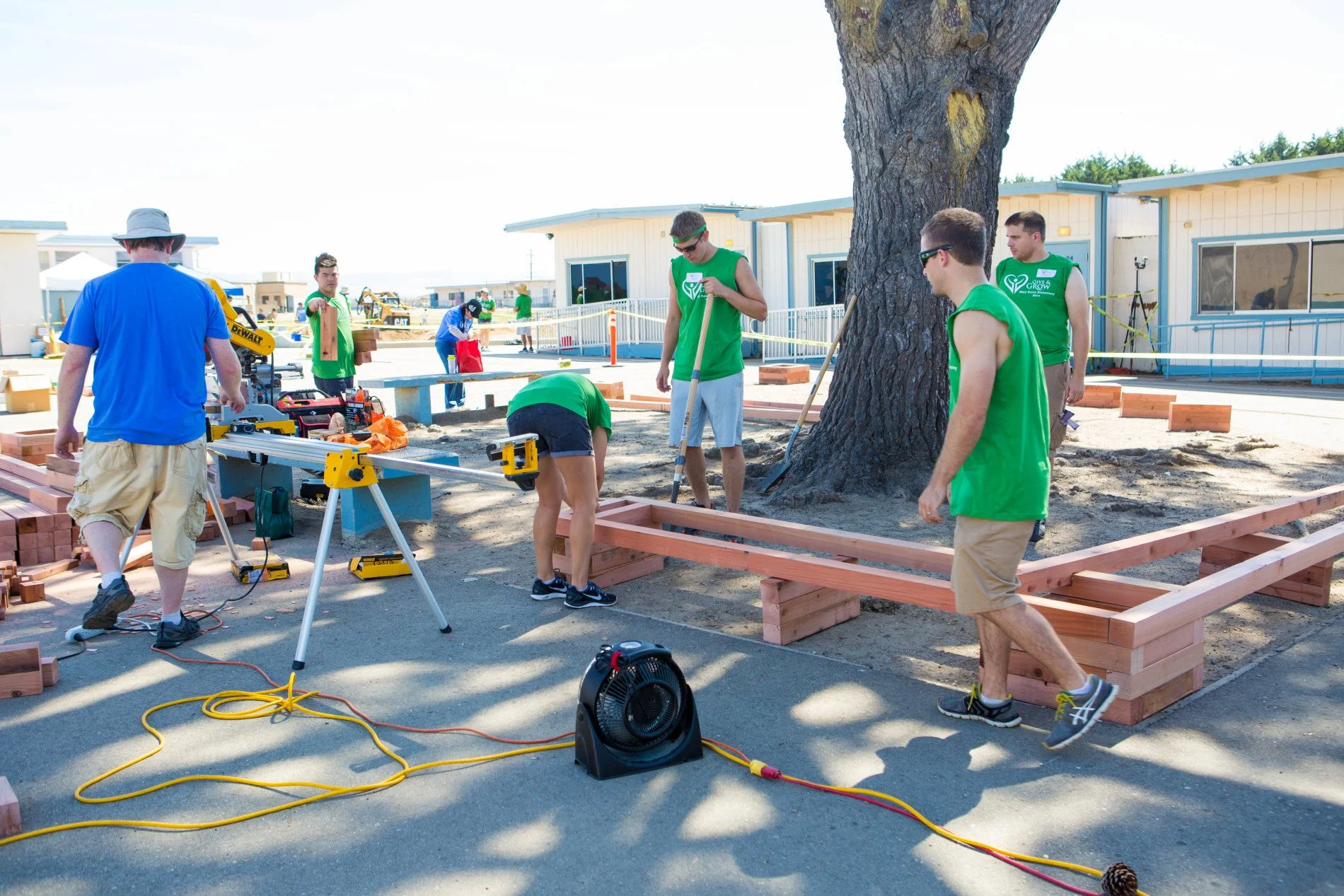 The 2014 Create Event was at Mary Buren Elementary in Guadalupe. Landscaping was done at the front of the school near the office and the school garden was cleaned up and new bark was laid down. A world map and United States map were painted on the blacktop; “paw print” markers were painted as guides for the children to stand on when lining up or playing games and to also serve as a guide for their track loop around campus. Many other pavement games were painted. Six murals were painted throughout the campus, two of which were California landscape themed. The California history timeline was installed in the cafeteria. Benches were built around a large tree with enough seating to host an entire classroom of students. Finally, Santa Maria Give and Grow’s first and biggest project: donation and installation of new playground equipment which included a slide, swings and monkey bars.
