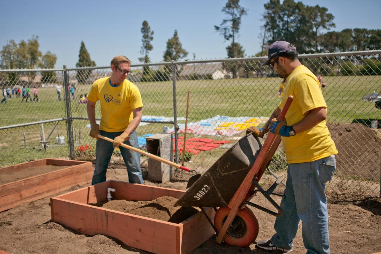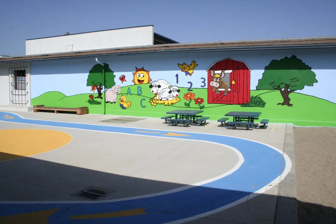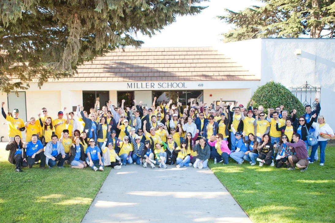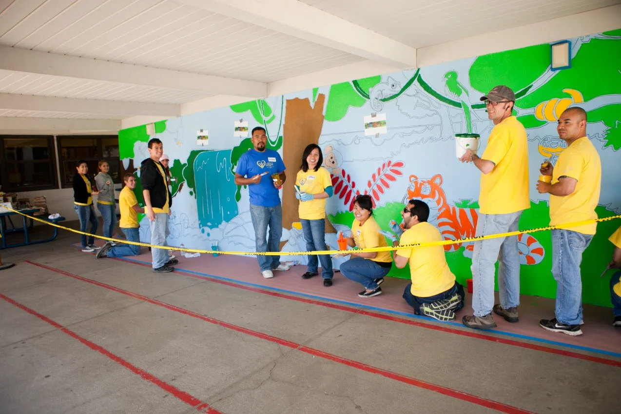 The 2013 Create Event was held at Miller School. One major project was the revitalization of the school garden. Planter boxes and benches were built. A shed filled with gardening supplies was donated. Stepping stones were painted colorful colors and laid throughout the garden. The existing Japanese garden had two intricate murals painted on the walls and two tables with seats built for the students to enjoy reading on their new Kindles that were donated. Nine additional murals were painted throughout the school, making this year’s mural project the most ambitious mural project to date. New books were donated for the library as well as bean bag chairs and rugs for the children to lounge on while reading. Continuing the vibrant color addition to the campus, the blacktop was painted with pavement games and a US Map.